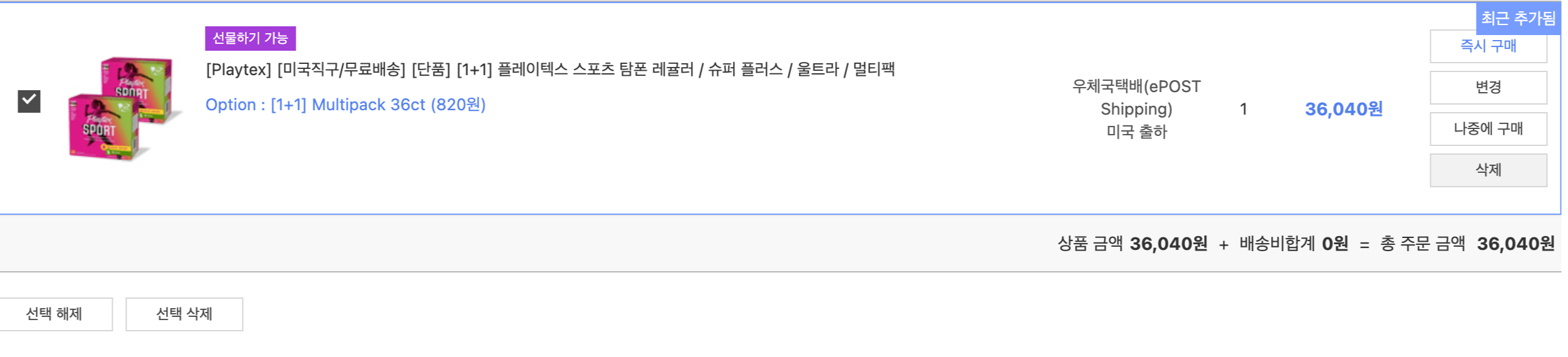 플레이텍스가 한국 수입을 멈추면서 기존에 사용하셨던 분들은 해외 직구를 이용하고 있습니다. 참 어렵기만 한 해외직구.. 하지만 요즘 해외직구도 한국의 온라인 마켓처럼 이용이 간편하다는 사실! 플레이텍스를 저렴하게 구매하는 방법을 알려드릴게요.